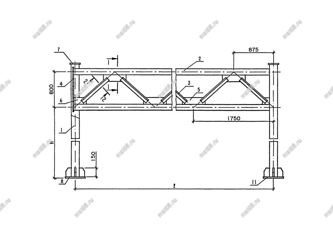 Рамная опора РМП-7 представляет собой две сдвоенные стойки из трубного металлопроката скреплённые поперечным горизонтальным ригелем, на который монтируют дополнительное оборудование. Ригель изготовлен специальной геометрической формы чтобы ведерживать не только предполагаемые нагрузки от располагаемого на нем оборудования но и климатические воздействия.